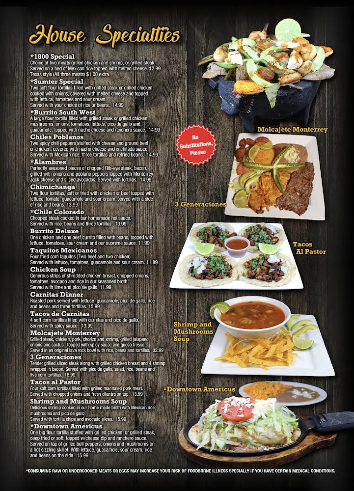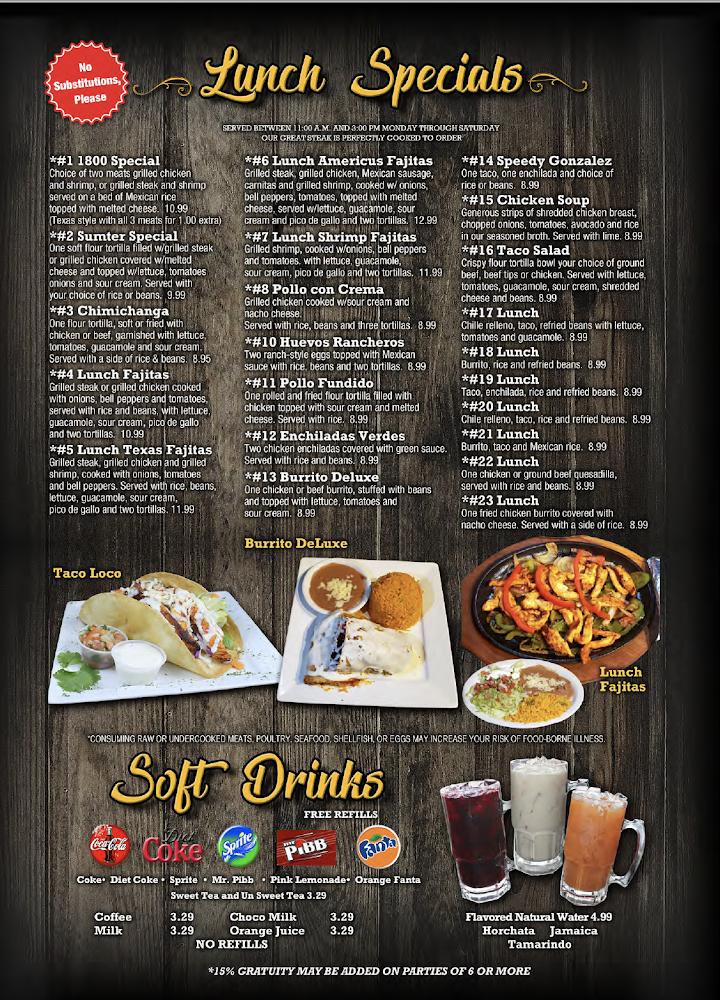 Lunch specials provide excellent value, allowing diners to enjoy favorites like fajitas and soups. Desserts like flan and fried ice cream are also available, rounding out the dining experience with sweet treats. With numerous options to choose from, there's something for everyone at 1800 Mexican.
